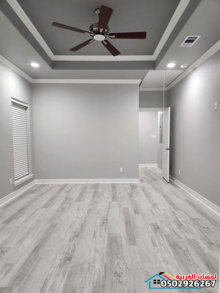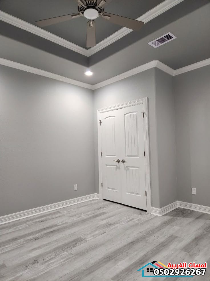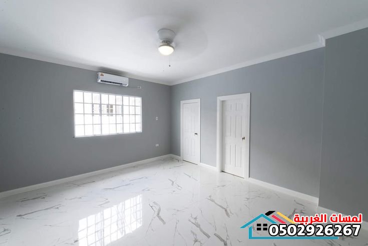 ومعلم لمسات الغربية للدهانات يقدم لكم باقة متكاملة من خدمات تنفيذ دهانات الصالات باللون الرصاصي.